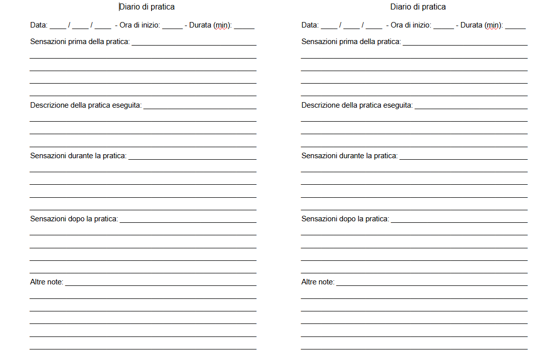 Un modello PDF da scaricare e stampare per poter compilare il tuo diario di pratica e tenere traccia del tuo percorso.